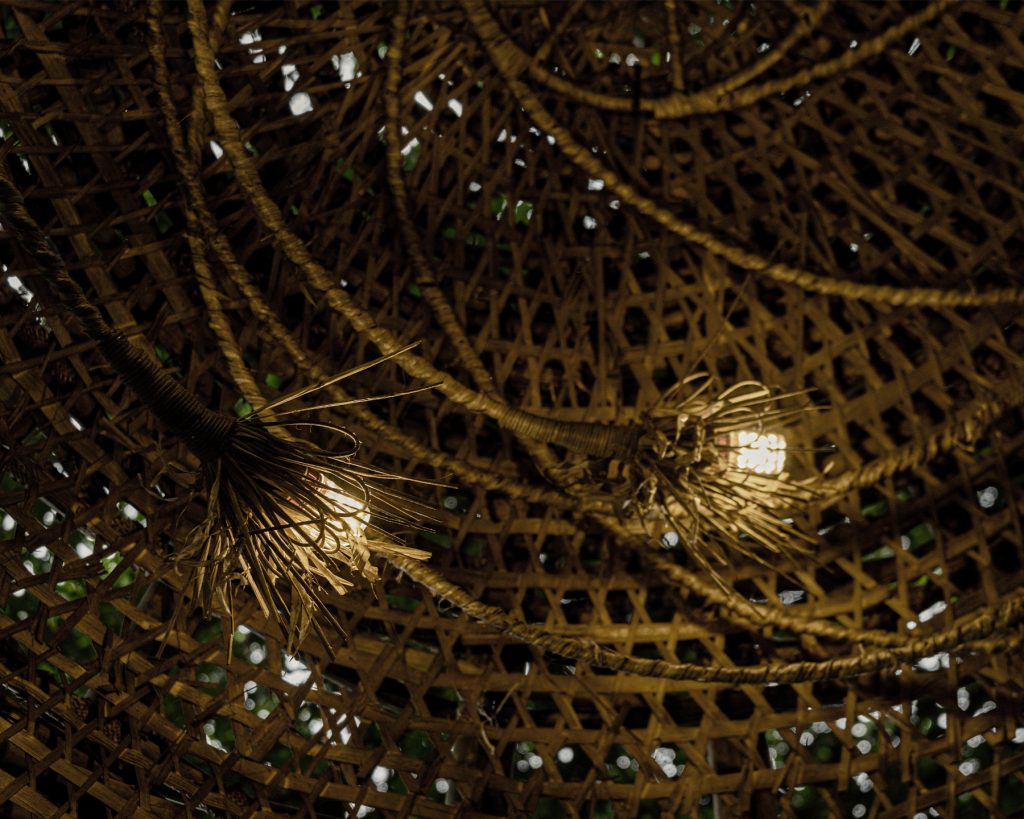 Скрытые кластеры светодиодов прячутся внутри плетёного абажура, излучая тёплый и гостеприимный свет, который раскрывает текстуру мастерства.